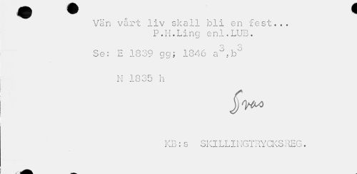 //// 9 w * //// Vän vårt liv skall bli en fest... //// P.H.Ling enl.LUB. //// Se: E 1839 gg; 1846 a°,b° //// N 1835 h //// yv . o c i t r t t i\tvn^ q deri ku c S oK JL i_.i_.J_ i .b i _ l x OKo... illU . ////