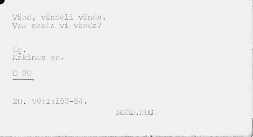 //// Vänd 5 vändeli vända. Vem skola vi vända? //// %r //// UG . //// Kakinds sn. //// D 80 //// EU. 99:1:153-54. //// NO i, "lU . I.US. ////