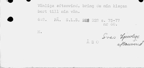 //// Vänliga aftonvind, bring du min klagan //// bort till min vän. //// ' fr 6:8. PÄ. S.L.S. igf 328 s. 75-77 //// nr 60. //// ?'• T //// A B 0 affau^uJ //// t^i . AV ___< _ _ _ . __ „ ___V -. , ////