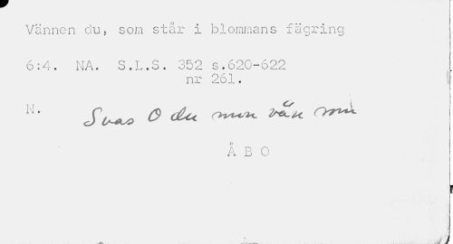 //// Vännen du, som står i blommans fägring //// 6:4. NA. S.L.S. 352 s.620-622 //// nr 261. //// 1 //// N- J O <£c<. Ovt^ //// O //// A B O //// 1 //// I //// - _ ) ////