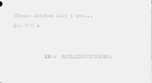 //// f //// Vänner drickom märg i ben... Se: U 8 a //// KB:s skillingtrycksreg. i //// 1 i ////