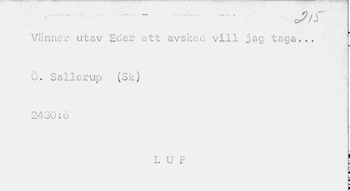 //// 7T ... _ - - .T. , ¦ J)S //// ¦ //// Vänner utav Eder ett avsked vill jag taga... ö. Sallerup (Sk) //// 2430:6 //// LUF ! ////