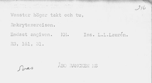 //// Jlt> //// Venster höger takt och tu, //// il //// Rekrytexercisen. //// Endast angiven. KH. Ins. L.L.Lauren. //// riö , iOl j o 1 . //// ÅBO RANCKEN b IS ////