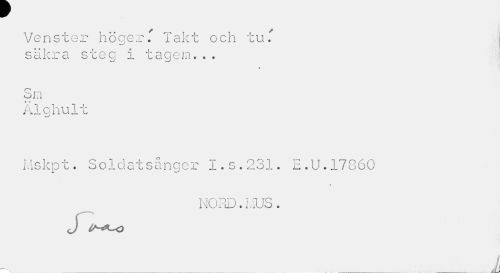 //// r //// Venster höger T Takt och tu.' säkra steg i t agera. . . //// « //// om //// A 1 nKnlf hiO IIUJl O //// Mskpt. Soldatsånger I.s.231. E.U.17860 //// « //// nord. i.iud . //// J ^nÄ-O //// / ////