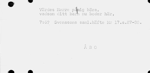 //// 1 i //// Värdes Herre parnig höra, vadsorn ditt barri nu beder här, //// 7:6? Svenssons sarnl. häfte Nr 17. s. 87-88. //// Å B O ////