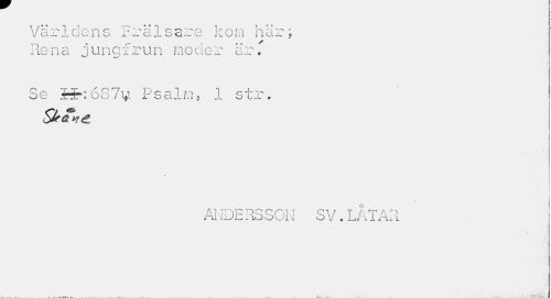 //// Världens Frälsare kom här; Re na j ungfrun moder ärf //// Se Hr: 687y Psalm, 1 str. //// > //// i i //// i //// i //// ANDERSSON SV.LÅTAR ////