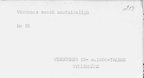 //// Jo //// Verdenes sveck marfaldeliqh ' . //// Nr 81 //// VISBÖCKER 15- O.1600-TALENS //// GYLLENI.1ÄRS ! //// ¦ ////