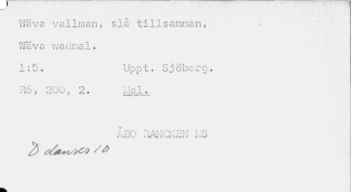 //// Wäva vallman, slå tillsamman? V/a v a waamal • //// 1:5. •Uppt. Sj Öberg. //// R6, 200, 2. Mel. //// ÅBO RANCKEN I..S //// 'j ////