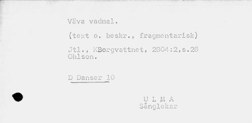 //// Väva vadmal. //// (text o. be skr., fragmentarisk) //// Jtl., KBorgvattnet, 2804:2,s.28 //// Ohlson. D Danser 10 //// ^wmm^wwmwwwwwwi ¦ i' —1 ———> //// Sånglekar ////