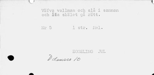 //// Väfva vallman och slå i samman och å£a skälet gå rätt. //// Nr 5 1 str. Mel. //// EGGELING JUL ^ /O ////