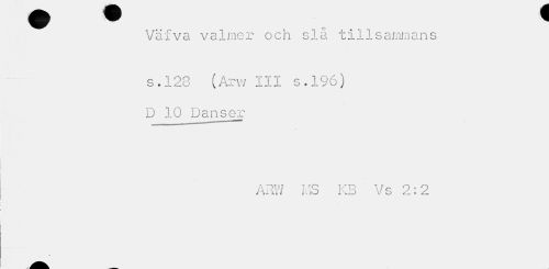 //// Väfva valmer och slå tillsammans //// s.123 (Arv/ III s . 196) D 10 Danser //// ARW MS KB Vs 2:2 //// * ////