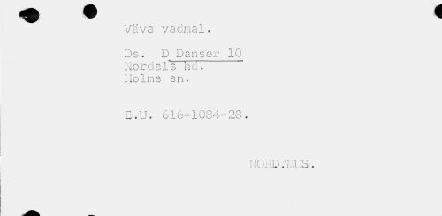 //// "Väva vadmal" //// Ds. D Danser 10 Nordals hd. Holms sn. //// E.U. 616-1084-28. //// MORD /MUS. ////