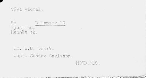 //// V ci v ci v a g mal« 1 //// i //// - - • ' //// Sn Di Danser IQ ; //// Tjust hd. Hannas sn. //// lim. E.U. 38179. //// Uppt. Gu stav Carls son. //// NORD. MUS. ////