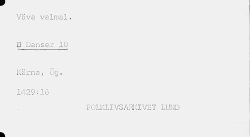 //// Väva valmal. B Danser 10 //// j //// <• € //// Kärna, ög. //// i //// 1429:16 //// FOLKLIVSARKIVET LUND ////