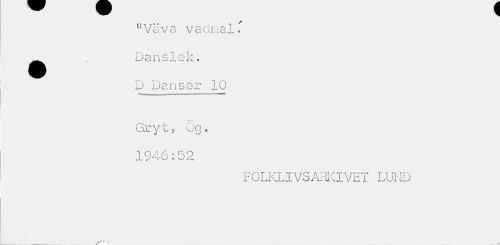 //// nVäva vadmal ^ Danslek. //// D Danser 10 //// Gryts Gg. 1946:52 //// FOLKLIVSARKIVET LUND //// X---v ////
