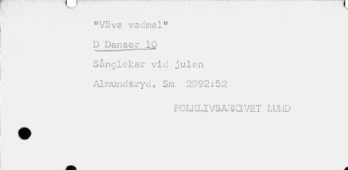 //// ' "Väva vadmal" D Danser 10 Sånglekar vid julen Almundsryd, Sm 2892:52 //// FOLKLIVS ARKIVET LUND ////