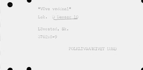 //// "Väva vadärnal" //// > //// Lek. D Danser 10 //// Lövestad, Sk. 3762:8-9 //// FOLKLIVSARKIVET LUND ////
