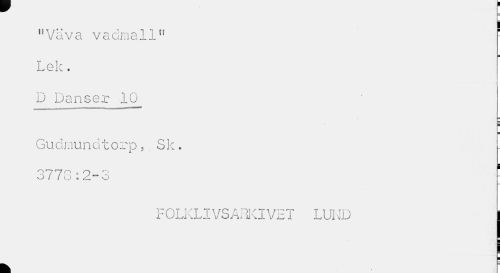 //// 11 Väva vadmall" Lek. //// D Danser 10_ Gudmundtorp, Sk. //// 3778:2-3 ' //// F OLKLIVSAPJCI VE T LUND 1 //// i //// k ////