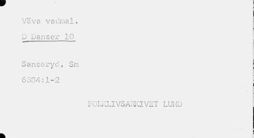 //// Väva vadmal. D Danser 10 //// Sanseryd, Sm //// 6384:1-2 ; //// FOLKLIVSARKIVET LUND ////