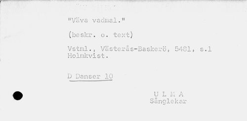 //// - r t - - ~ -i • //// nVava vadmal.n (beskr. o. text) //// Vstml. s Väster.ås-Baskerö, 5481, s.l Holmkvist. //// D Danser 10 //// Sånglekar ////