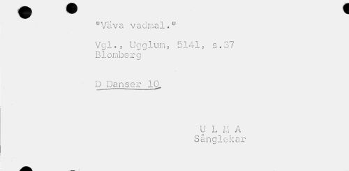 //// "Väva vadmal." //// V q 1., Ucglum, 5141, s . 37 Blomberg //// D Danser 10. //// U L M A Sånglekar ////