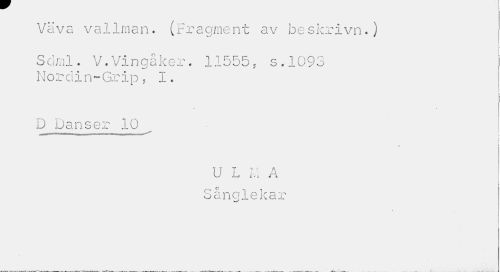 //// Vä v a v a 11 rn a n. (F r a gme n t a v b e s kr i vn.) //// | //// Sami. V.Vingåker. 11555, s.1093 //// w' * //// T. T * ¦ //// Noram-Grip, i. //// D Danser 10 //// i - --- //// i i //// UT T. A- A //// JL, i'vi A //// Sånglekar //// w' //// « ////