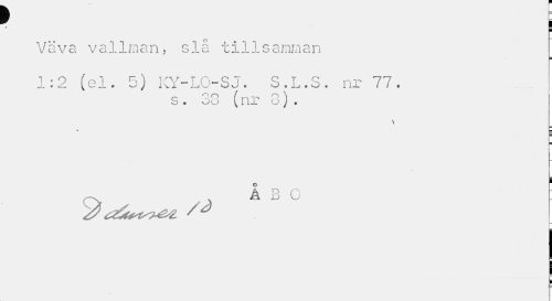 //// Väva vallman, slå tillsamman //// 1:2 (el. 5) KY-LOSJ. S.L.S. nr 77. //// s . 33 (nr 3) . //// \ //// Å ~ ' ////