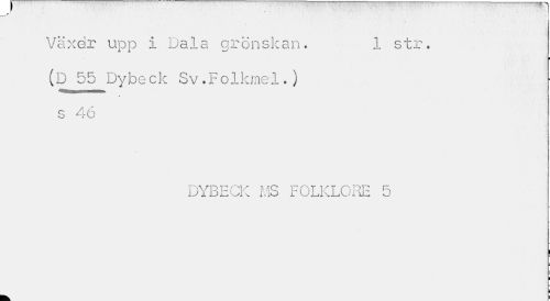 //// Växer upp i Dala grönskan. 1 str. //// . (D 55 Dybeck Sv.Folkmel.) //// s 46 //// DYBECK MS FOLKLORE 5 //// i i //// I ////