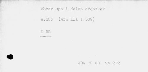 //// Växer upp i dalen grönskar s.285 (Arw III s.309) //// D 55 //// ARW MS KB Vs 2:2 ////