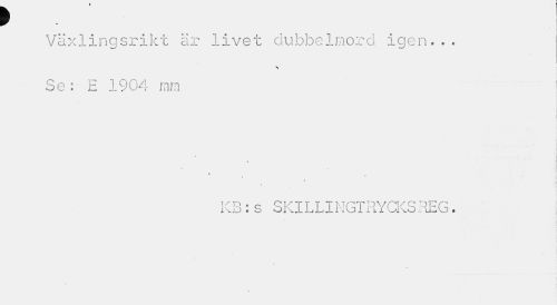 //// f //// , I //// Växlingsrikt är livet dubbelmord igen... Se: E 1904 mm //// 1 j //// v //// S //// « //// t //// KB:s SKILLINGTRYCKS REG. ////
