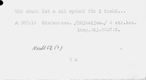 //// w //// Vör slcudd äut u aka spända för i krakä. . . //// A 382:14 Stadsresan. /Böjraijsu./ 4 str.korn. //// insp.Iltj .9437 :5. //// sVmMn frj //// p A I I ; //// i L i "l //// - ^ I ////