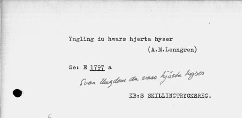//// ¦v • 4 //// i //// Kt'-' //// ¦¦ 1 ¦ ... Yngling du hwars hjerta hyser //// (Å.M.Lenngren) //// Se: E 1797 a //// ~ — jr* ^ //// ® KB:S SKILLIUGTRYCKSREG. //// C ////