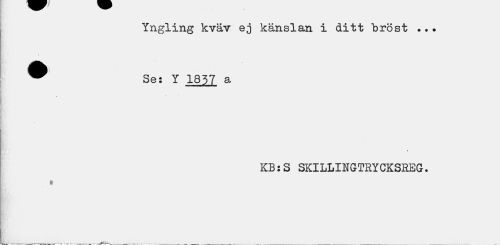 //// Yngling kväv ej känslan i ditt "bröst //// i //// W Se: Y 1857 a //// * //// KB:S SKILLINGTHYCKSEEG. ////