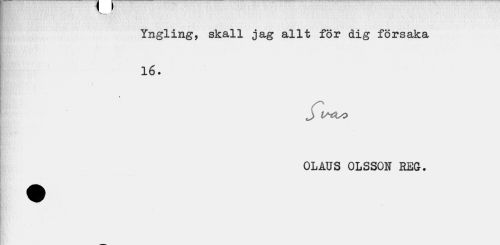 //// Yngling, skall jag allt för dig försaka 16. //// J Wto //// OLAUS OLSSON REG. ////