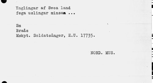 //// Ynglingar af Svea land ' //// fega uslingar minsam .•• //// Sm //// Braås //// Mskpt. Soldatsånger, E.U. 17735» ! //// >_ //// L_ ¦ //// NORD. MUS. r //// i i //// i ¦ ////