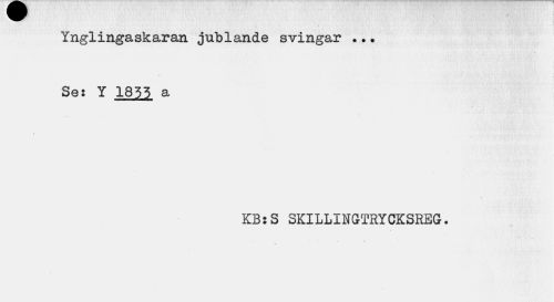 //// w //// Ynglingaskaran jublande svingar ... //// Se: Y 1855 a //// KB:S SKILLINGTRYCKSREG. //// ' i « ////