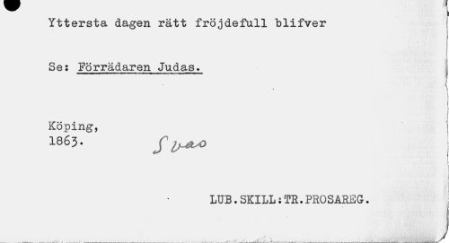 //// i //// Yttersta dagen rätt fröjdefull "blifver j //// t i //// f i //// Se: Förrädaren Judas» j //// i n //// \ //// l //// Köping, i //// 1863. S'! //// F //// \ //// i //// J //// i //// « //// i //// I //// LUB.SKILL i TR.PROSAREG. j ////