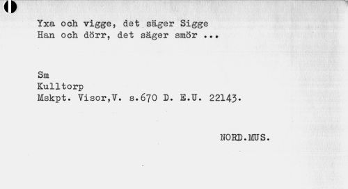 //// Yxa och vigge, det säger Sigge Han och dörr, det säger smör . .# //// Sm //// Kulltorp //// Mskpt. Visor,V. s.670 D. E.U. 22143- //// WORD.MS. ////