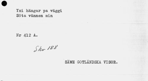 //// Yxi hangar pa väggi Söta vännen min //// Nr 412 A. //// SA*'** //// SÄWE GOTLÄNDSKA VISOR. ////