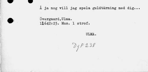 //// 1 ja nog vill jag spela guldtärning med dig... //// ÖvergaardjUlma. ^ 11642:23. Mus. 1 strof. //// ULMå. //// IttFtZt //// s—\ ////
