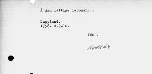 //// Å jag fattige lappman... Lappland. //// 1756. s.9-10. //// IPGH. ////