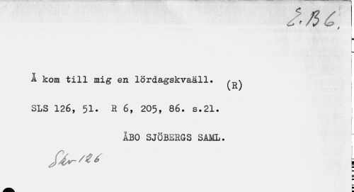 //// ^ Jw j j //// i- //// Ä kom till mig en lördagskvaäll. ^^ SLS 126, 51. H 6, 205, 86. s. 21. //// ÅBO SJÖBERGS SAML. //// l //// m //// U //// a t ////
