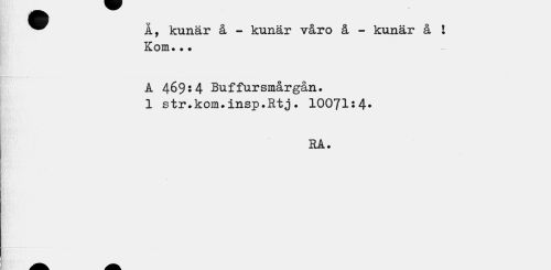 //// ^^ Å, kunär å - kunär våro å - kunär å l //// Kom..• //// A 469*4 Buffursmårgån. //// 1 str.kom.insp.Rtj. 10071:4» //// RA. ////