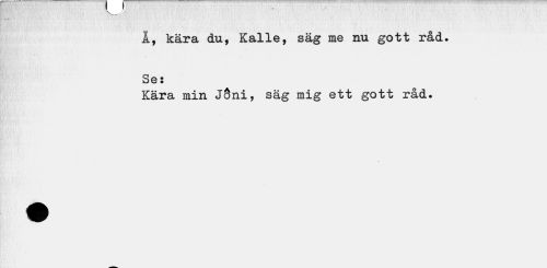 //// TV / J» //// Å, kära du, Kalle, säg me nu gott råd. Se: //// Kära min JÖni, säg mig ett gott råd. ////