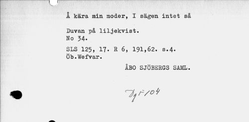 //// Å kära min moder, I sägen intet så //// Duvan på liljekvist. No 34. //// SLS 125, 17. H 6, 191,62. s.4. Öb.Wefvar. //// ÅBO SJÖBERGS SAML. ////