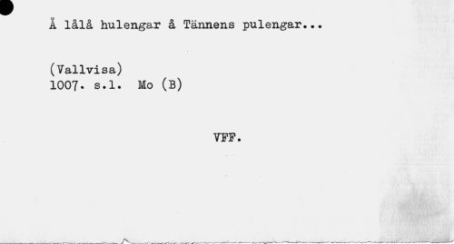 //// i lålå hulengar å Tännens pulengar... //// (Vallvisa) //// 1007. s.l. Mo (B) //// VFF. ////