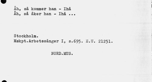 //// Åh, si homer han - a» 1 //// Åh, så åker han - Ihå ... i //// t //// .••>' i i //// ... ... -. .1 //// ; //// ! //// i //// ; //// I //// Stockholm. I //// Mskpt.Årbetssånger I, s.695. 21251. //// NORD.MUS. //// i ? //// i 1 //// " -—————•- ...| ////