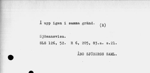 //// 1 upp igen i samma gränd• ^^ Sjömansvisa. //// SLS 126, 52. R 6, 205, 85.a. s.21. //// ÅBO SJÖBERGS SAML. //// c ' ////
