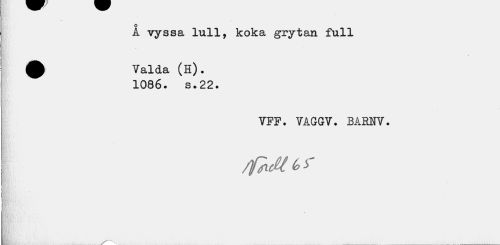 //// 1 vyssa lull, koka grytan full //// £ Valda (H). //// 1086. s. 22. //// VFF. VAGGV. BARNV. //// /factt ////