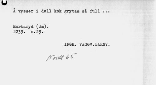 //// A vysser i dull kok grytan så full ... Markaryd (Sm). //// 2239. s.23. //// IFGH. YAGGV.BAHNV. ////